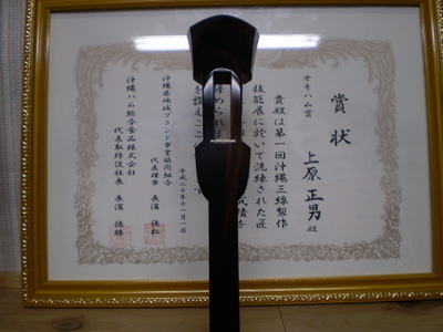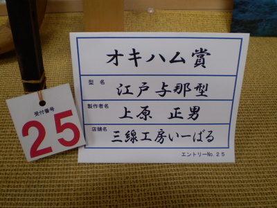 第一回沖縄三線製作技能品評会において江戸ユナーが入賞しました